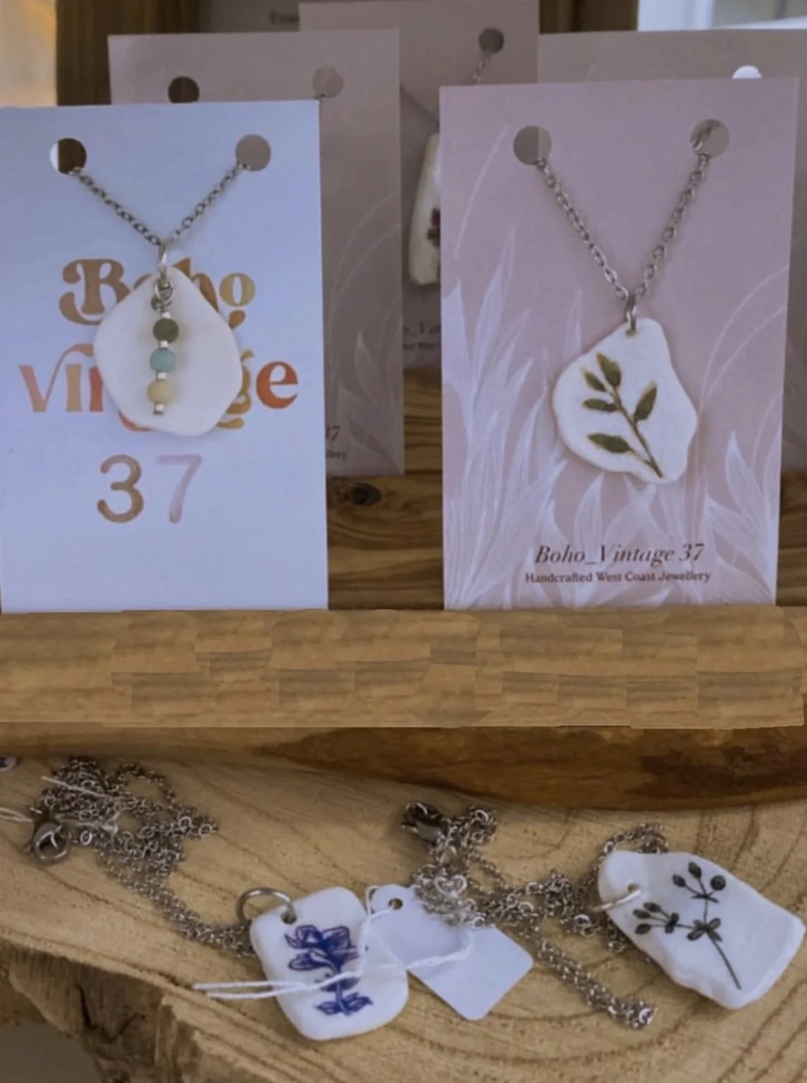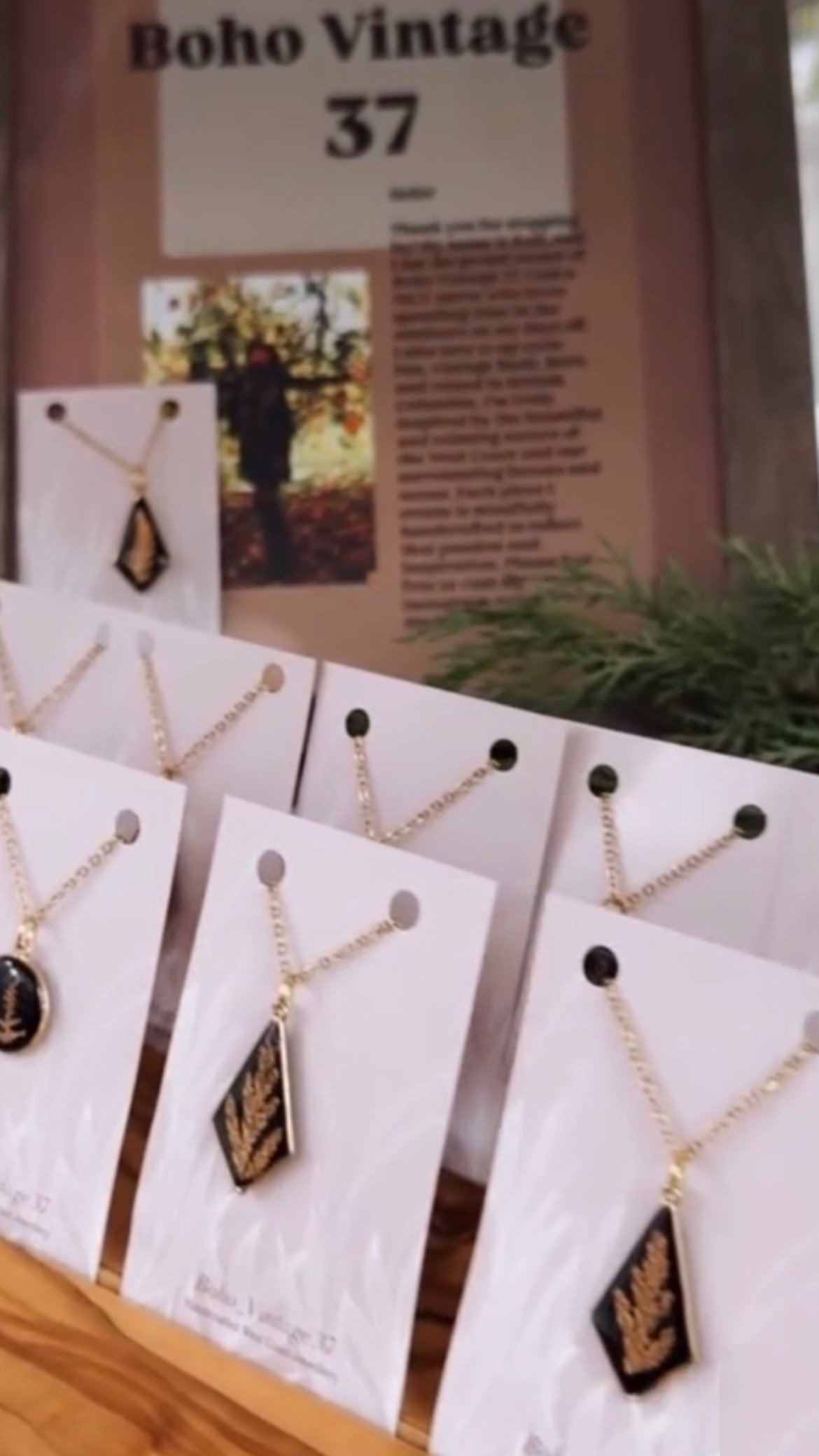 Welcome to Boho Vintage 37. Native to the West Coast of British Columbia, my jewellery is created using ethically sourced materials from our surrounding forests and ocean. Each piece I design has been mindfully handcrafted with intentionally chosen pieces of foliage and coastal shells to showcase the beauty of a province we all call home.
